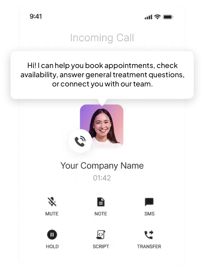 No more missed calls or long wait times. Clients get instant, consistent service — and your clinic stays polished and professional.